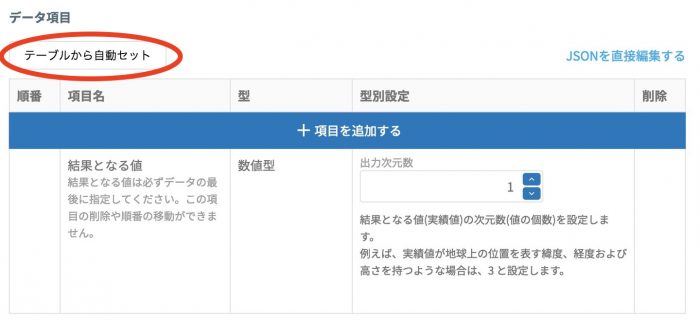 すると、トレーニングデータ設定の表の左上に DataEditorから設定 というボタンが増えているのがわかります。