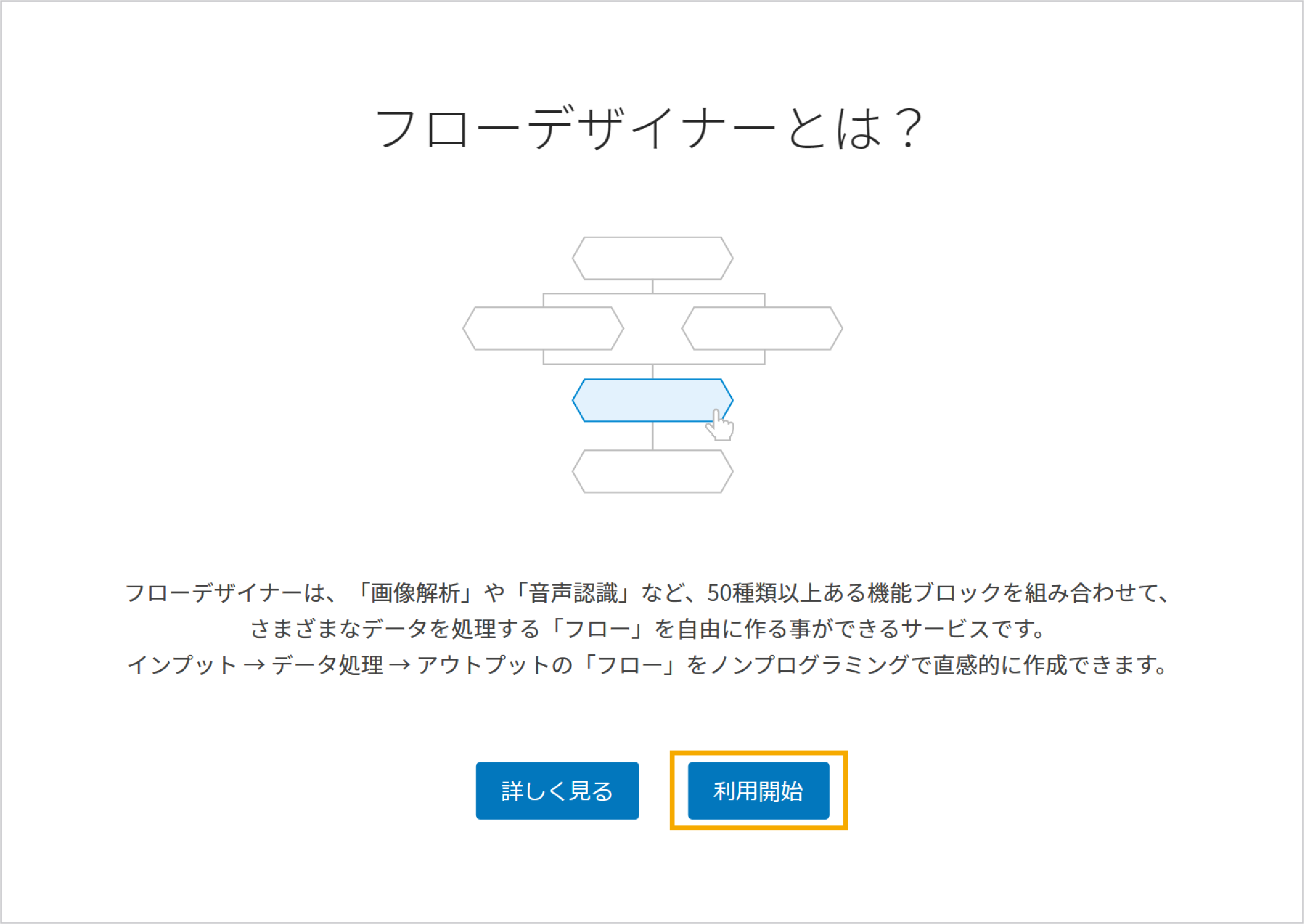フローデザイナーは、ブロックを組み合わせて処理フローを作成し、さまざまなデータを処理する業務システムを構築・運用できるサービスです。