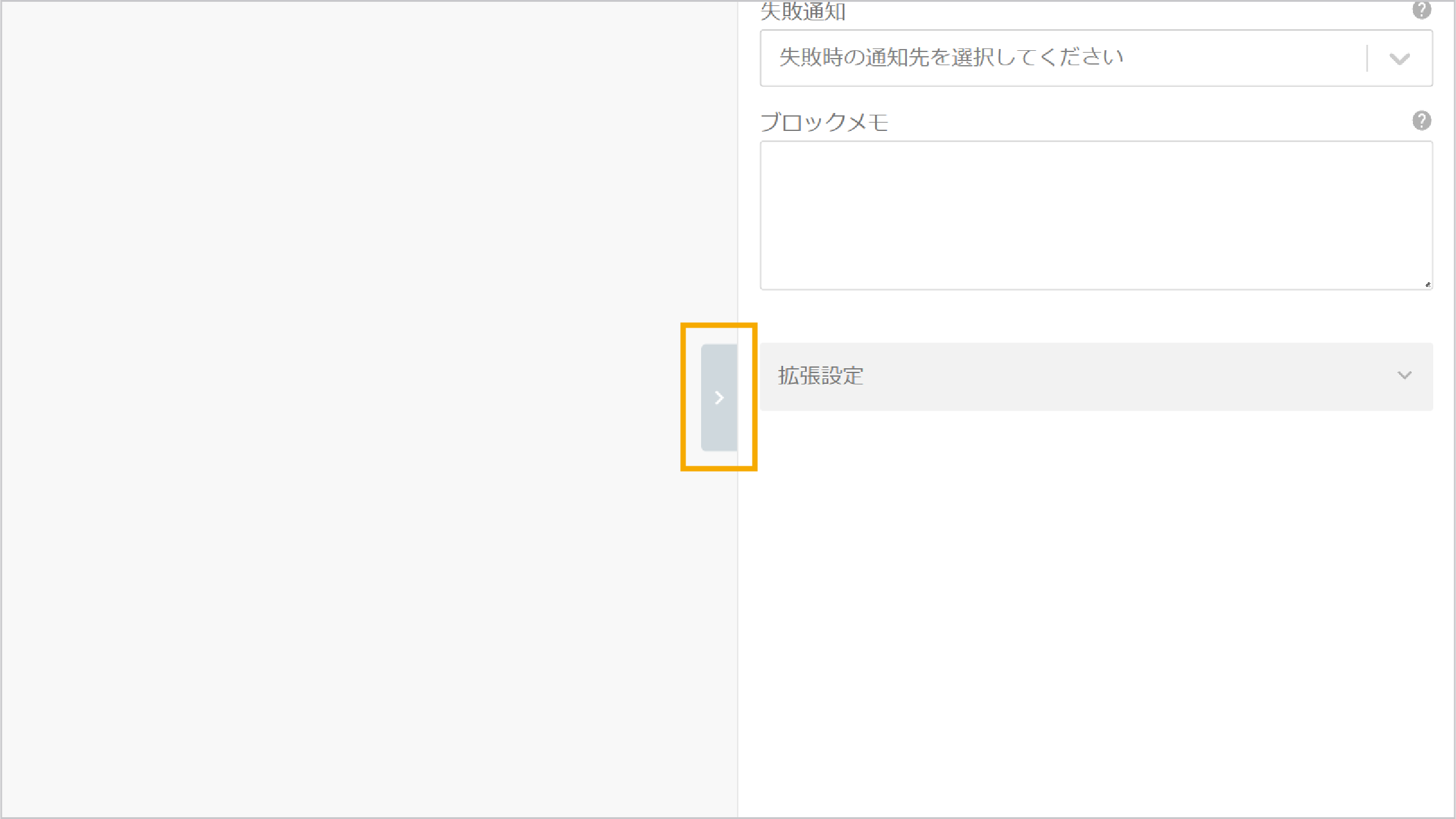フロー終了時の通知方法を管理します。この通知は、フローの実行が「成功したとき」と「失敗したとき」のそれぞれで利用します。 - ブロック終了時の通知一覧: