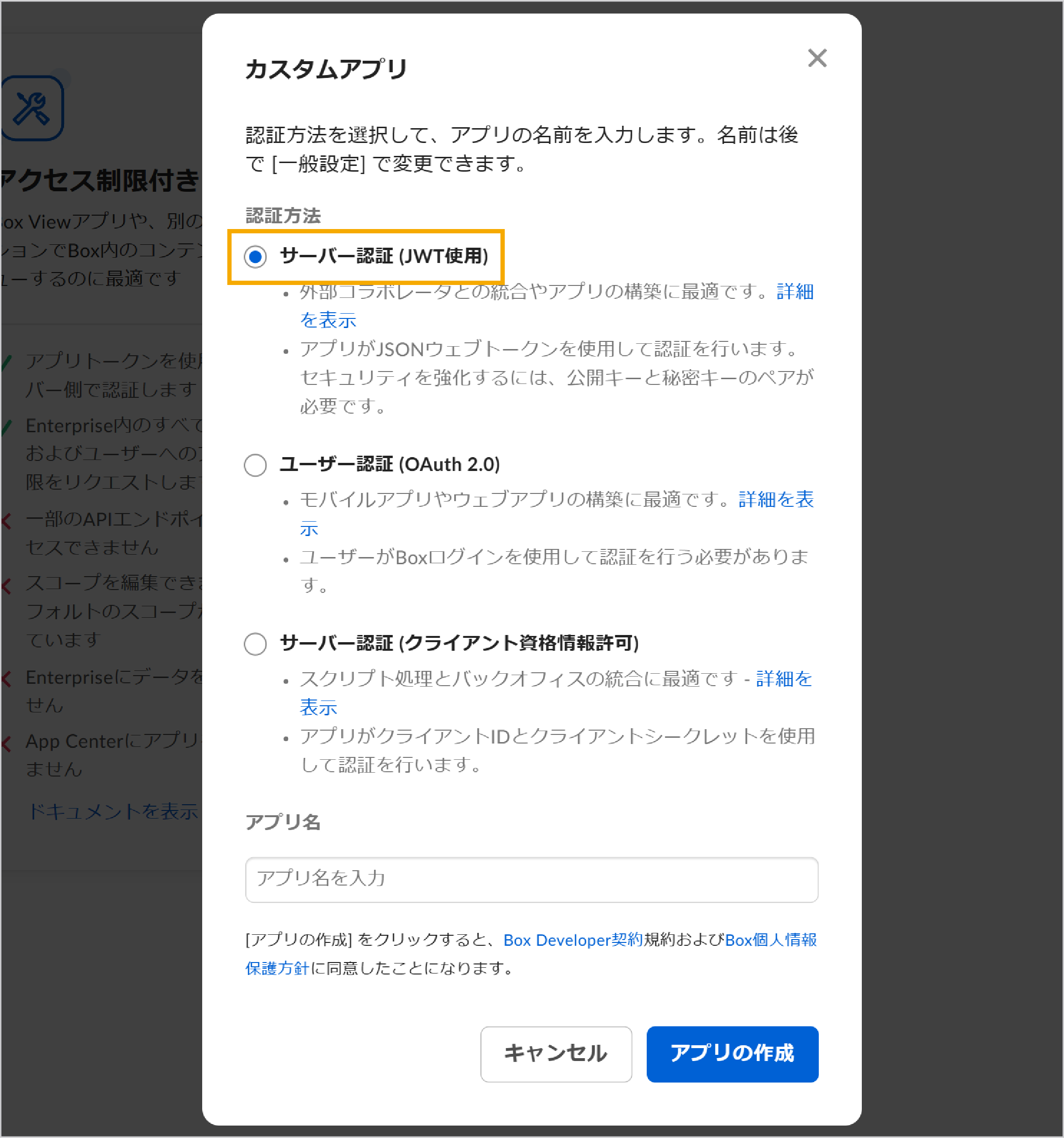 Boxサービスアカウントは、Box開発者コンソールでBoxアプリを作成すると自動で作成されます。